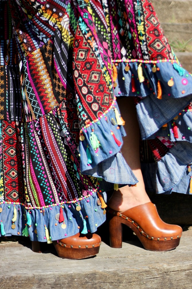 Disfrutando ya de unos días de descanso, aprovecho para mostraros otra de mis propuestas.  En esta ocasión se trata de uno de mis vestidos largos favoritos: con falda multicolor de vuelo realizada en patchwork y cuerpo liso.  Es un vestido que tiene muchísimo peso, por la cantidad de tela que lleva. Lo compré en la que es ya hoy para mí una de mis tiendas favoritas (La Vie en Rose by Shimai); os pongo el link abajo. Le he añadido un cinturón de cuero trenzado y una de las piezas  que acompaña a muchos de mis estilismos como es la toquilla en color camel.